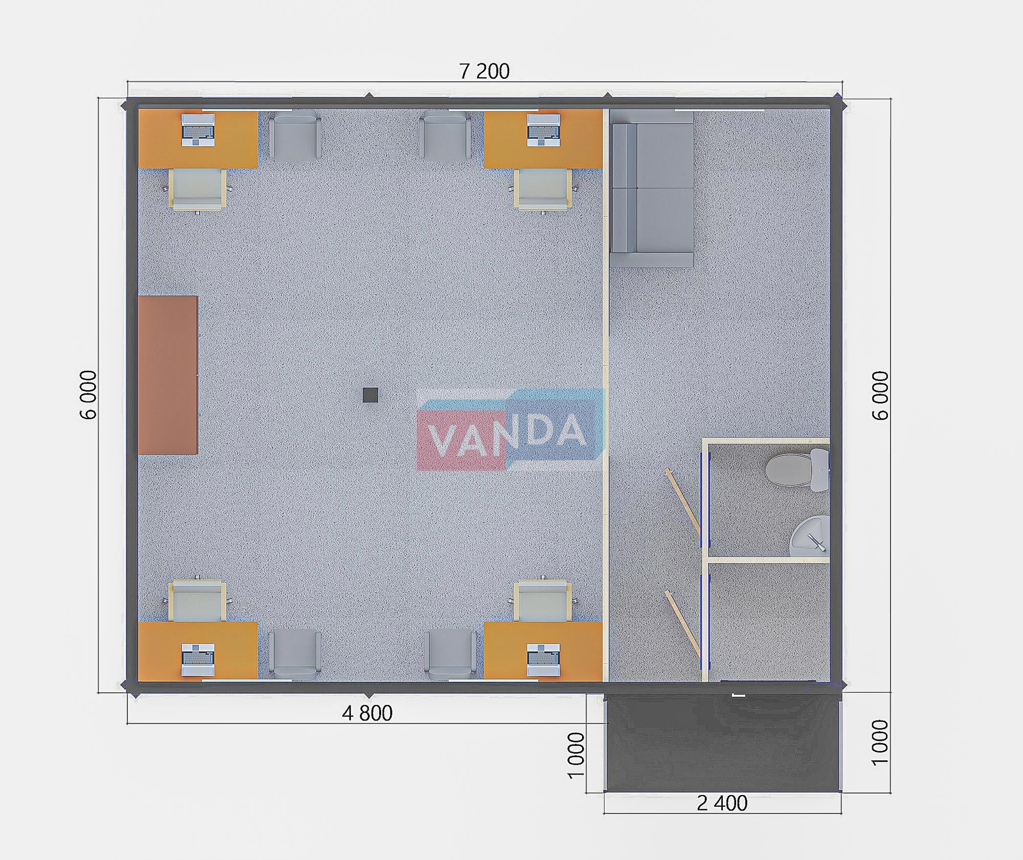 Модульная бытовка с плоской крышей 7.2x6.0 7.2x6.0 43.2 OSB 9 мм. Оцинкованный профлист 650 000 р. Уточняйте у менеджера